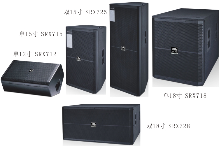 ■ 單12寸專業(yè)音響 型號:SRX712 ; 單元組成:低音1×12寸(300mm),高音1×1.75寸(44mm);額定功率:350W;阻抗:8Ω;頻率響應:83Hz-18KHz±3dB;靈敏度(1W/1M):96dB;最大聲壓:131dB;覆蓋范圍:90°×50°;連接器:2×NEUTRIK NL4;尺寸(高×寬×深):349×546×260mm。