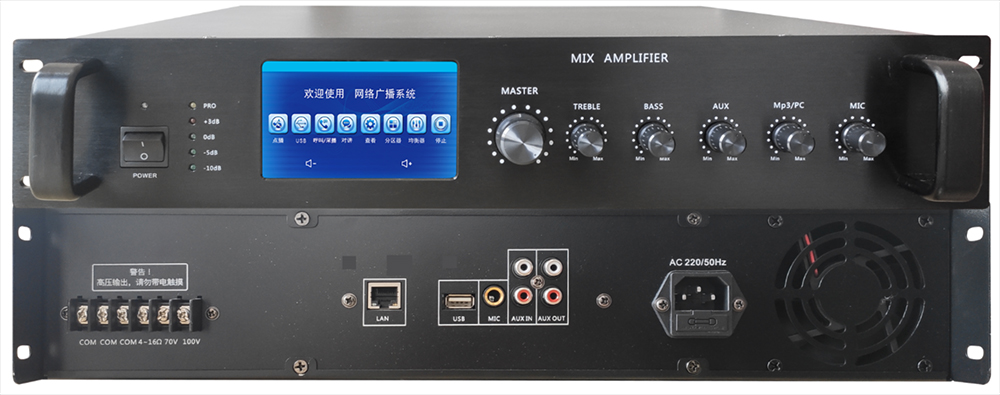 4)網(wǎng)絡(luò)音頻,AUX,話筒單獨(dú)音量調(diào)節(jié),高低壓調(diào)節(jié),總音量調(diào)節(jié);